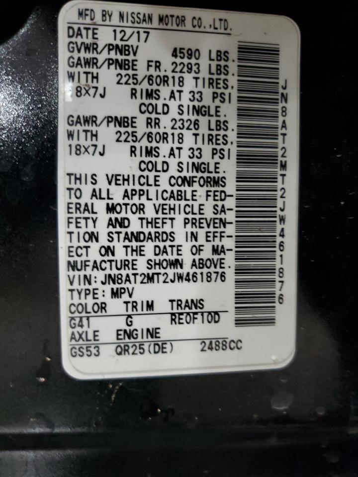 2018 NISSAN ROGUE - JN8AT2MT2JW461876, колір - Чорний, 2.5, Бензин, із США