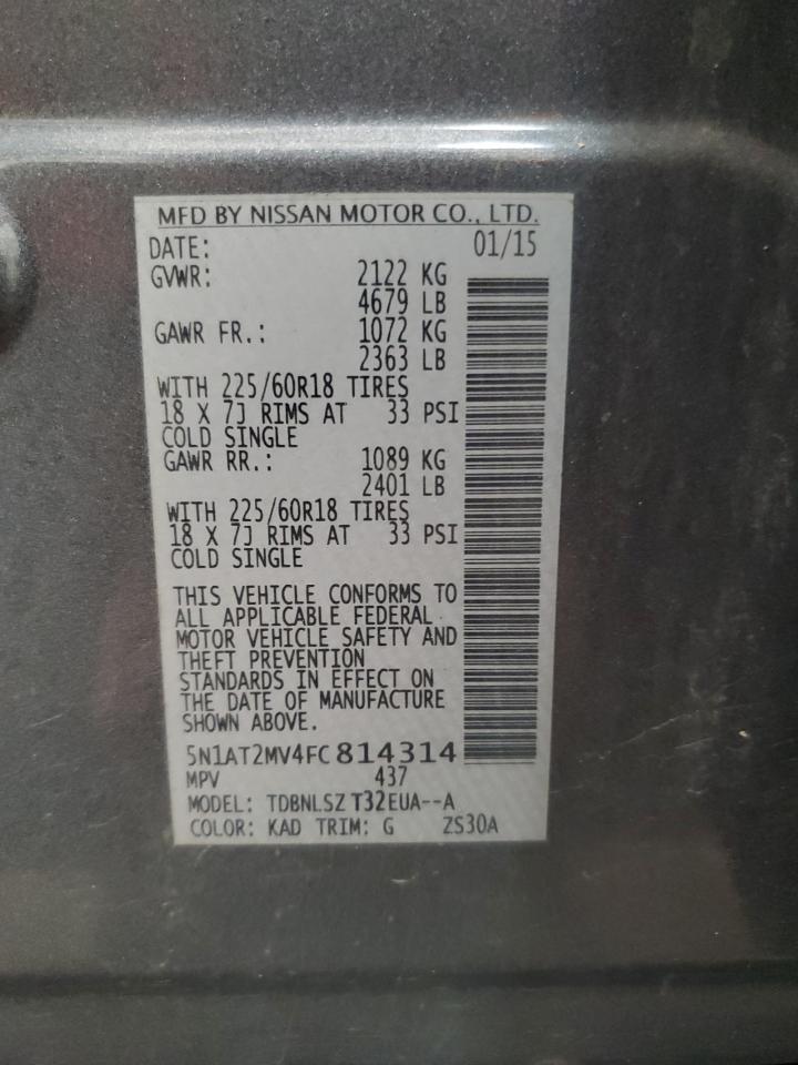 2015 NISSAN ROGUE - 5N1AT2MV4FC814314, колір - Сірий, 2.5, Бензин, Повний привід із США