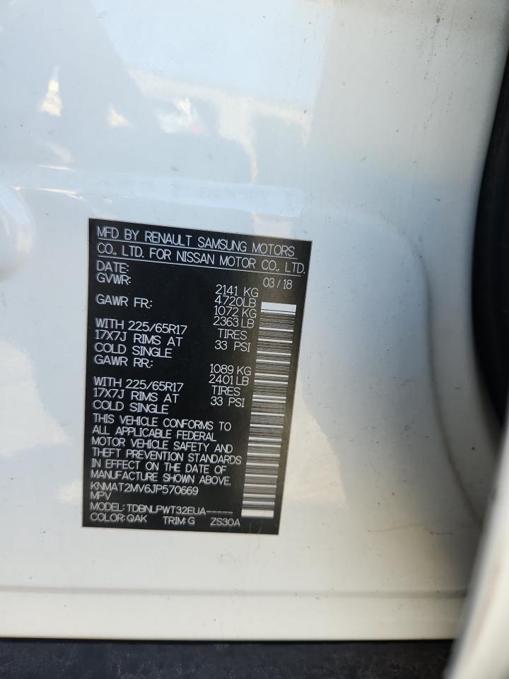 2018 NISSAN ROGUE - KNMAT2MV6JP570669, колір - Білий, 2.5, Бензин, Повний привід із США