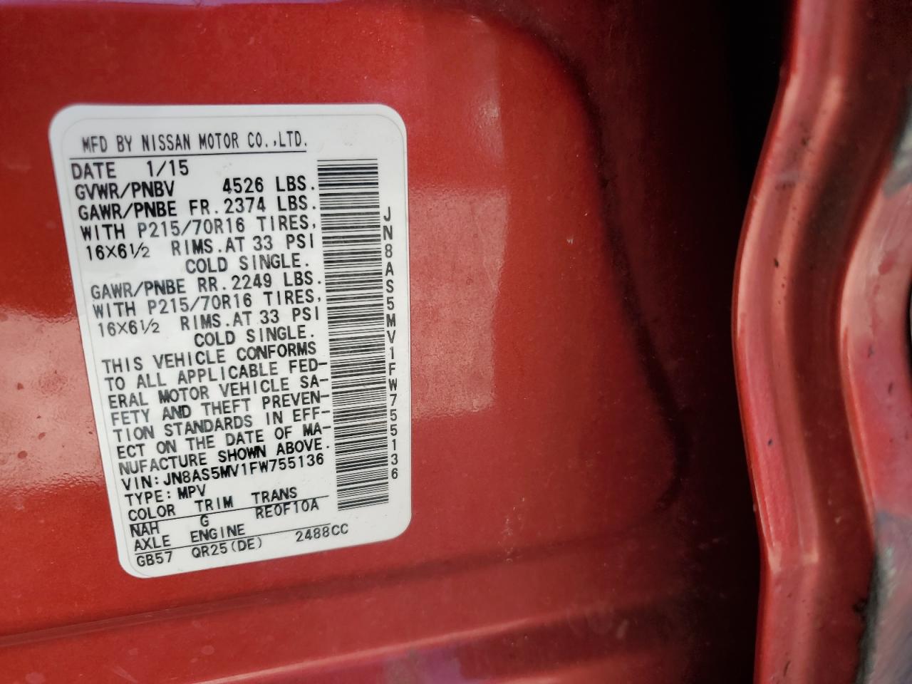 2015 NISSAN ROGUE - JN8AS5MV1FW755136, колір - Червоний, 2.5, Бензин, Повний привід із США