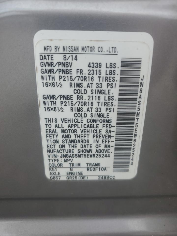 2014 NISSAN ROGUE - JN8AS5MT5EW625244, колір - Сірий, 2.5, Бензин, із США