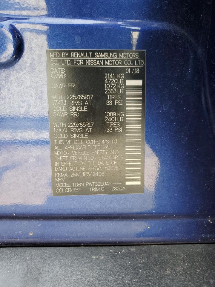 2018 NISSAN ROGUE - KNMAT2MV1JP549406, колір - Синій, 2.5, Бензин, Повний привід із США