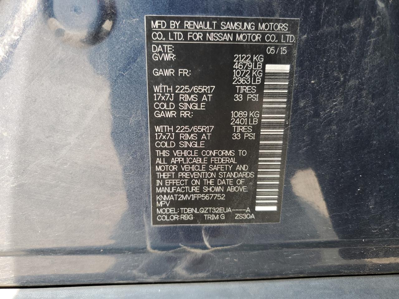 2015 NISSAN ROGUE - KNMAT2MV1FP567752, колір - Синій, 2.5, Бензин, Повний привід із США