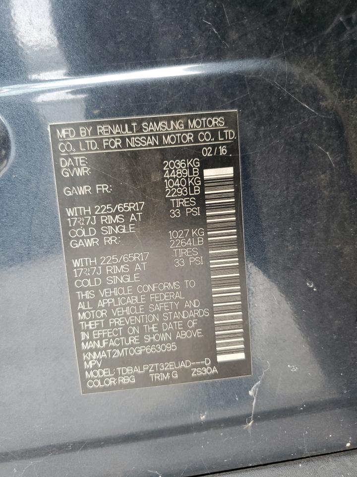 2016 NISSAN ROGUE - KNMAT2MT0GP663095, колір - Синій, 2.5, Бензин, із США