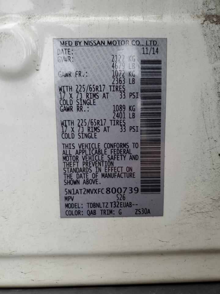 2015 NISSAN ROGUE - 5N1AT2MVXFC800739, колір - Білий, 2.5, Бензин, Повний привід із США