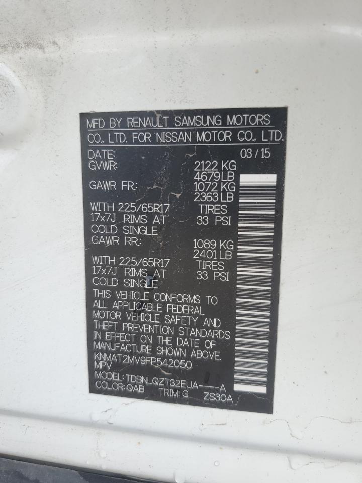 2015 NISSAN ROGUE - KNMAT2MV9FP542050, колір - Білий, 2.5, Бензин, Повний привід із США