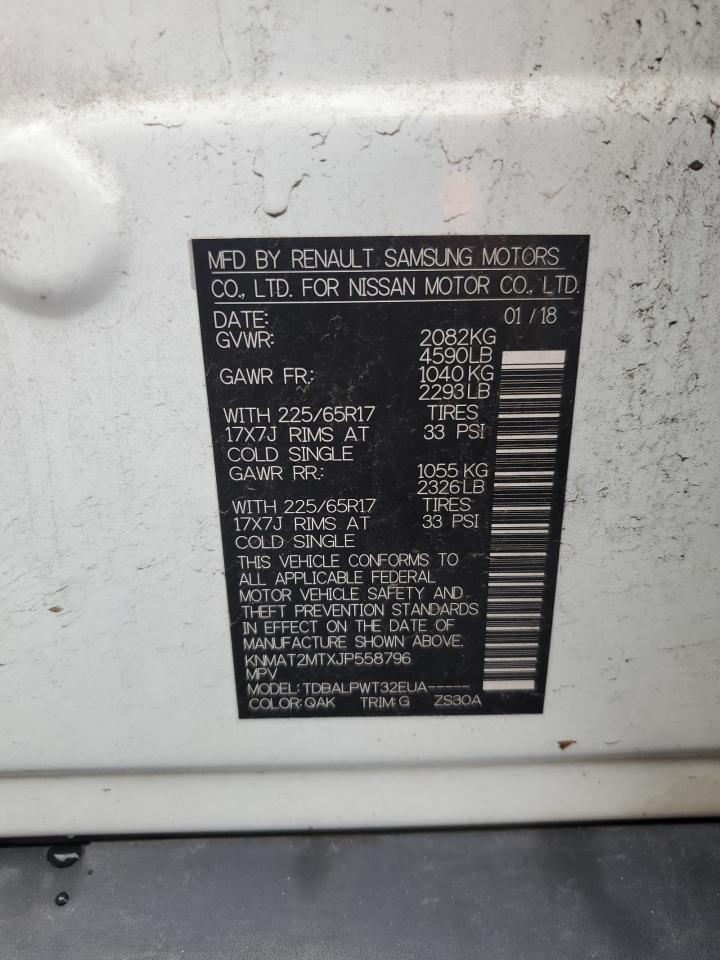 2018 NISSAN ROGUE - KNMAT2MTXJP558796, колір - Білий, 2.5, Бензин, із США
