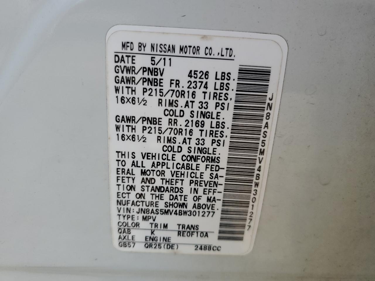 2011 NISSAN ROGUE - JN8AS5MV4BW301277, колір - Білий, 2.5, Бензин, Повний привід із США