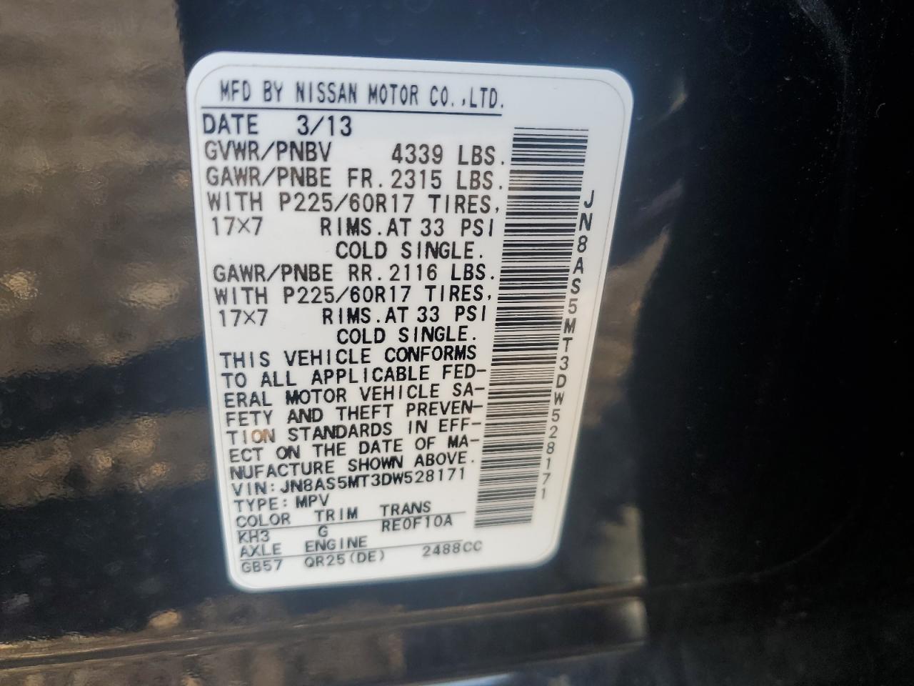 2013 NISSAN ROGUE - JN8AS5MT3DW528171, колір - Чорний, 2.5, Бензин, із США