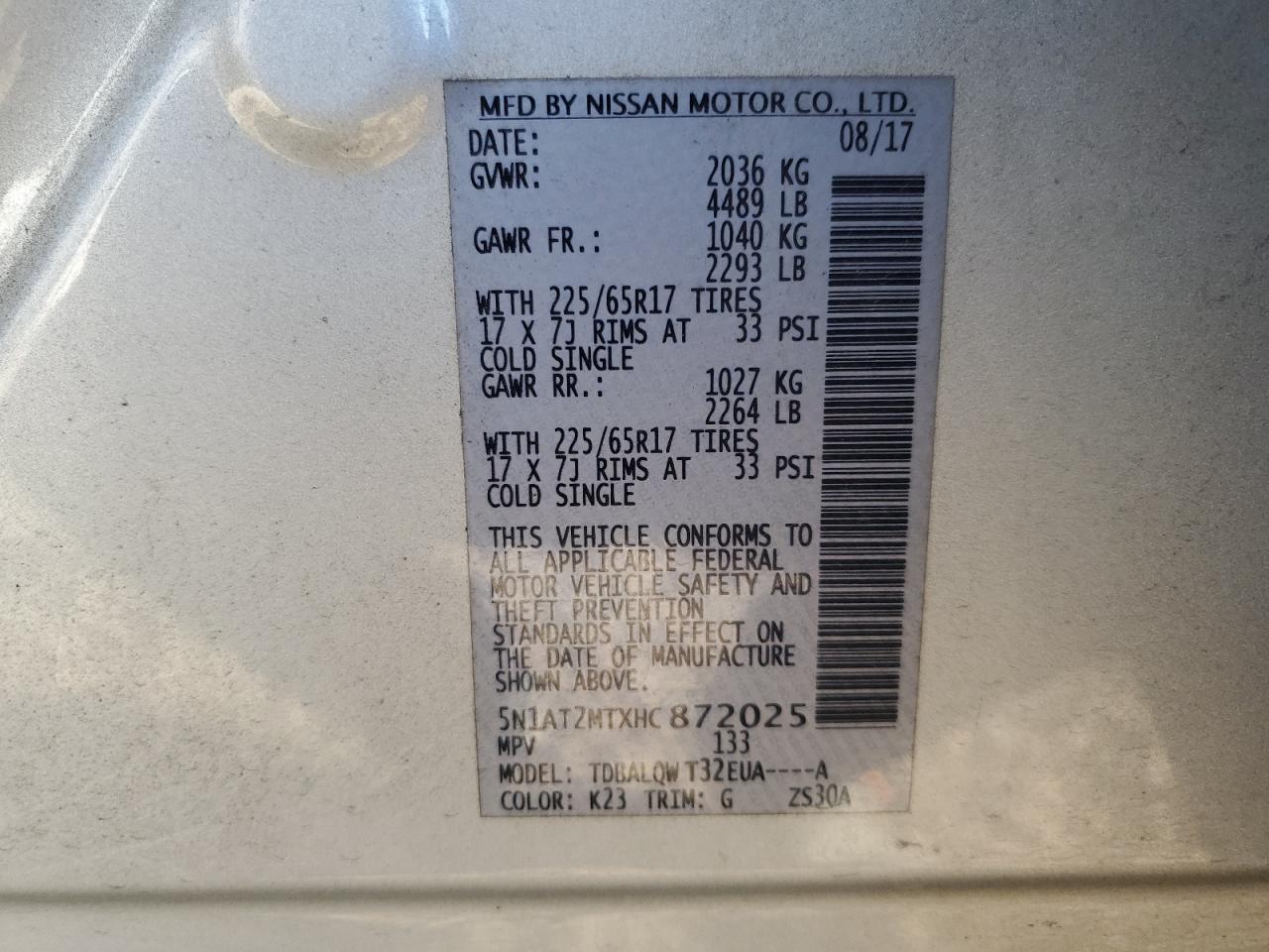 2017 NISSAN ROGUE - 5N1AT2MTXHC872025, колір - Срібний, 2.5, Бензин, із США