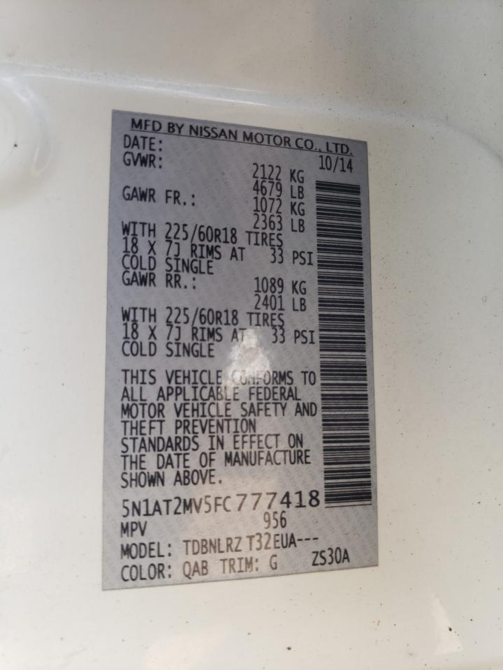 2015 NISSAN ROGUE - 5N1AT2MV5FC777418, колір - Білий, 2.5, Бензин, Повний привід із США