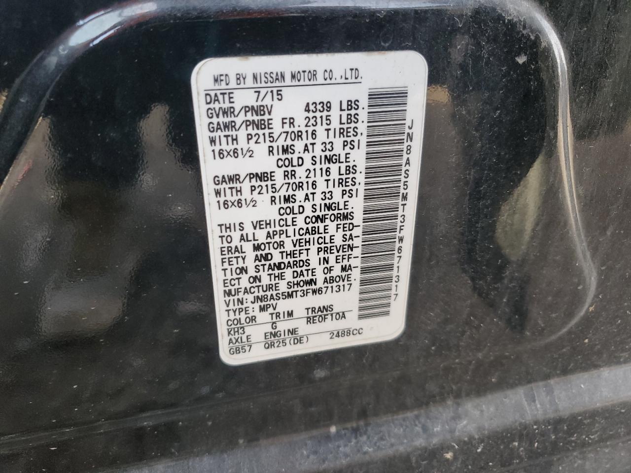 2015 NISSAN ROGUE - JN8AS5MT3FW671317, колір - Чорний, 2.5, Бензин, із США