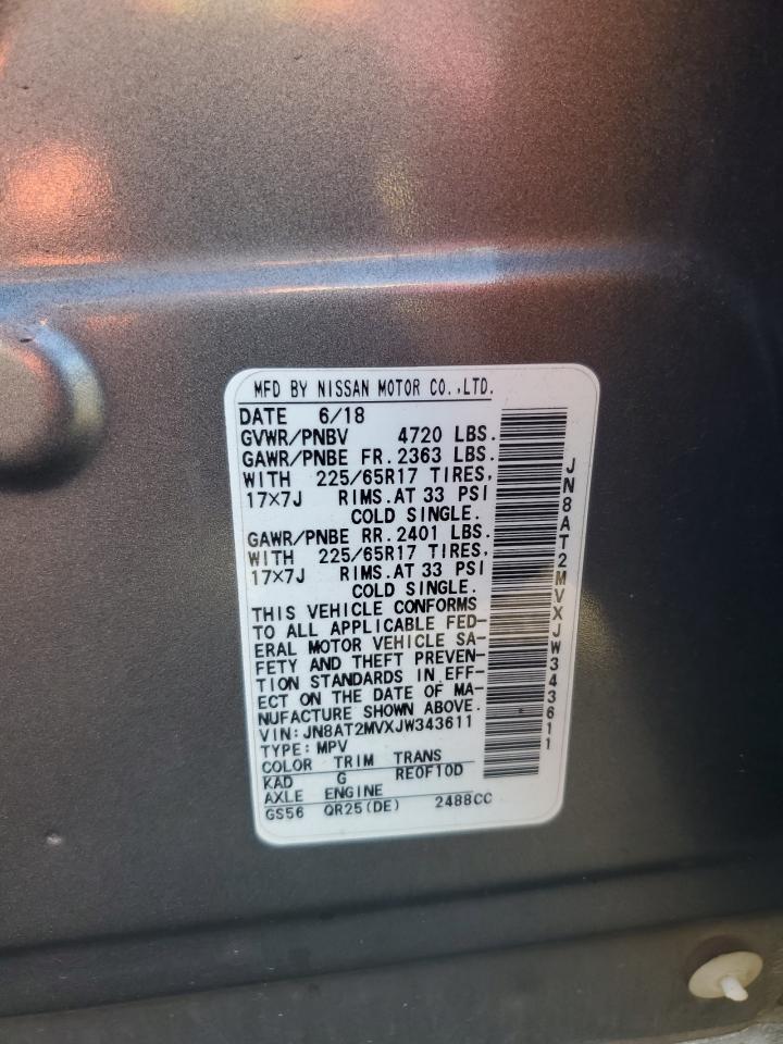 2018 NISSAN ROGUE - JN8AT2MVXJW343611, колір - Сірий, 2.5, Бензин, Повний привід із США