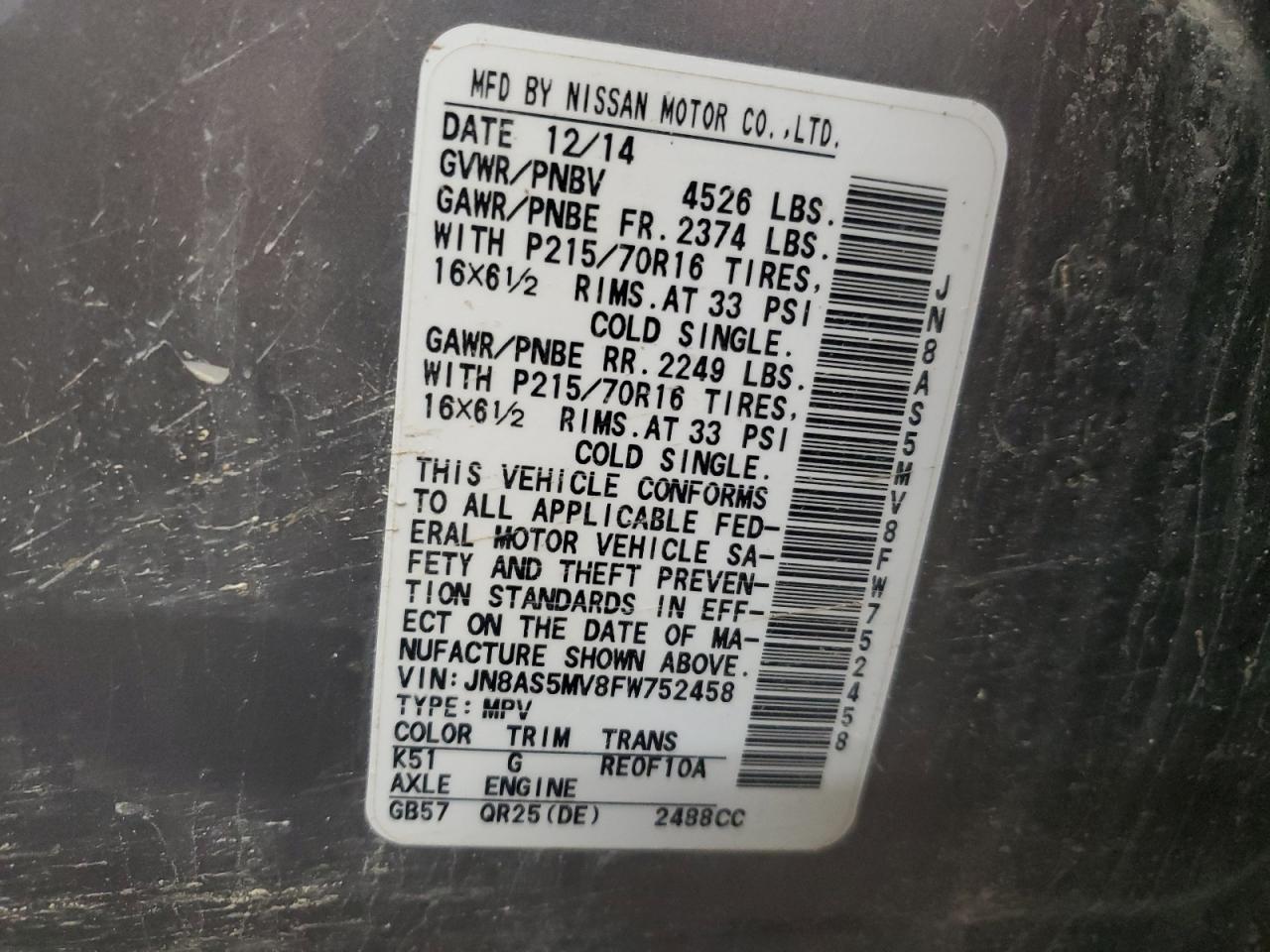 2015 NISSAN ROGUE - JN8AS5MV8FW752458, колір - Сірий, 2.5, Бензин, Повний привід із США
