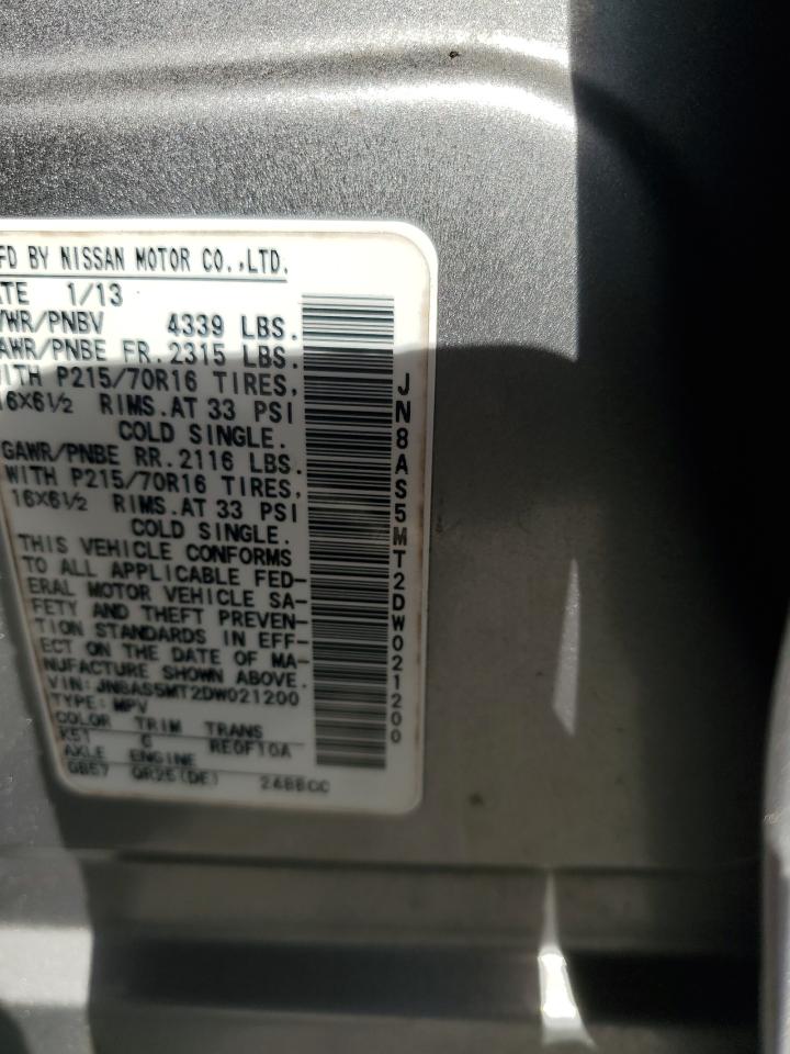 2013 NISSAN ROGUE - JN8AS5MT2DW021200, колір - Сірий, 2.5, Бензин, із США