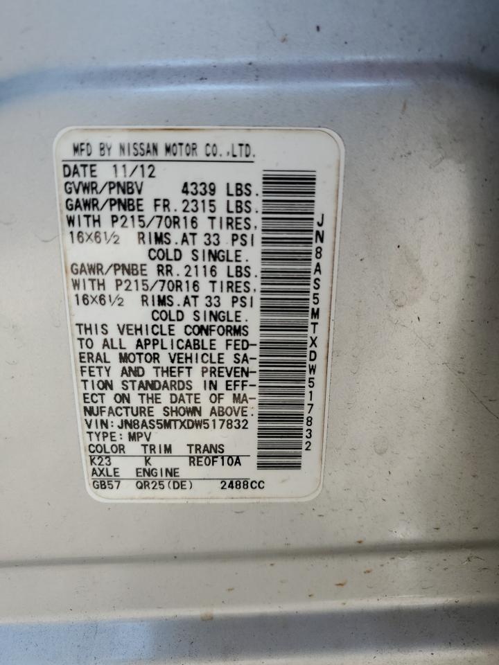 2013 NISSAN ROGUE - JN8AS5MTXDW517832, колір - Срібний, 2.5, Бензин, із США