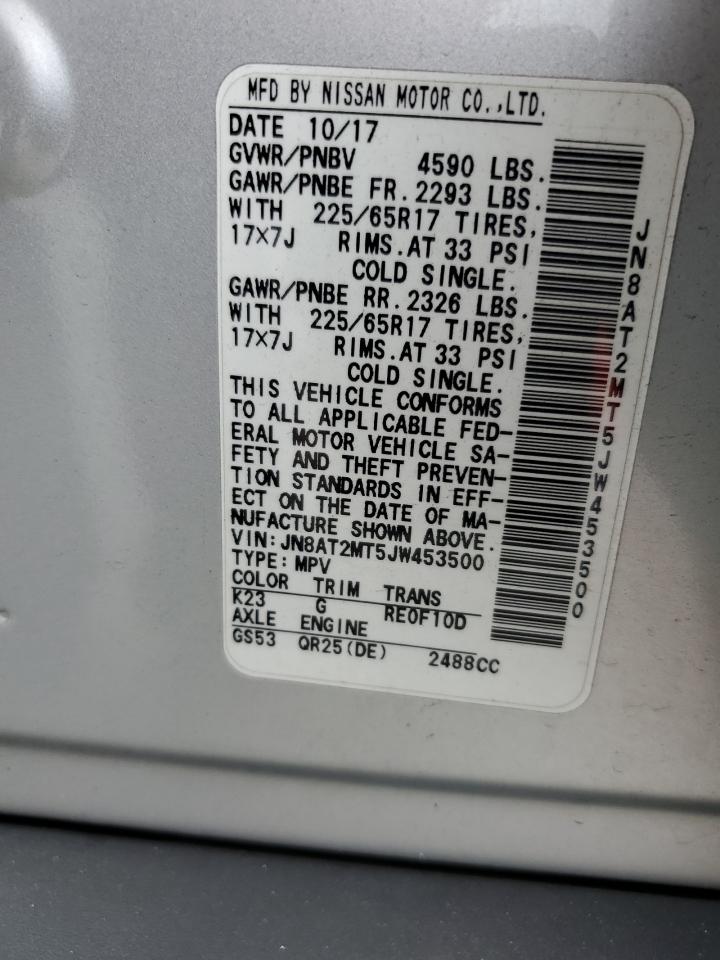 2018 NISSAN ROGUE - JN8AT2MT5JW453500, колір - Срібний, 2.5, Бензин, із США