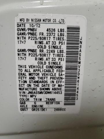 2013 NISSAN ROGUE - JN8AS5MV3DW614453, колір - Білий, 2.5, Бензин, Повний привід із США