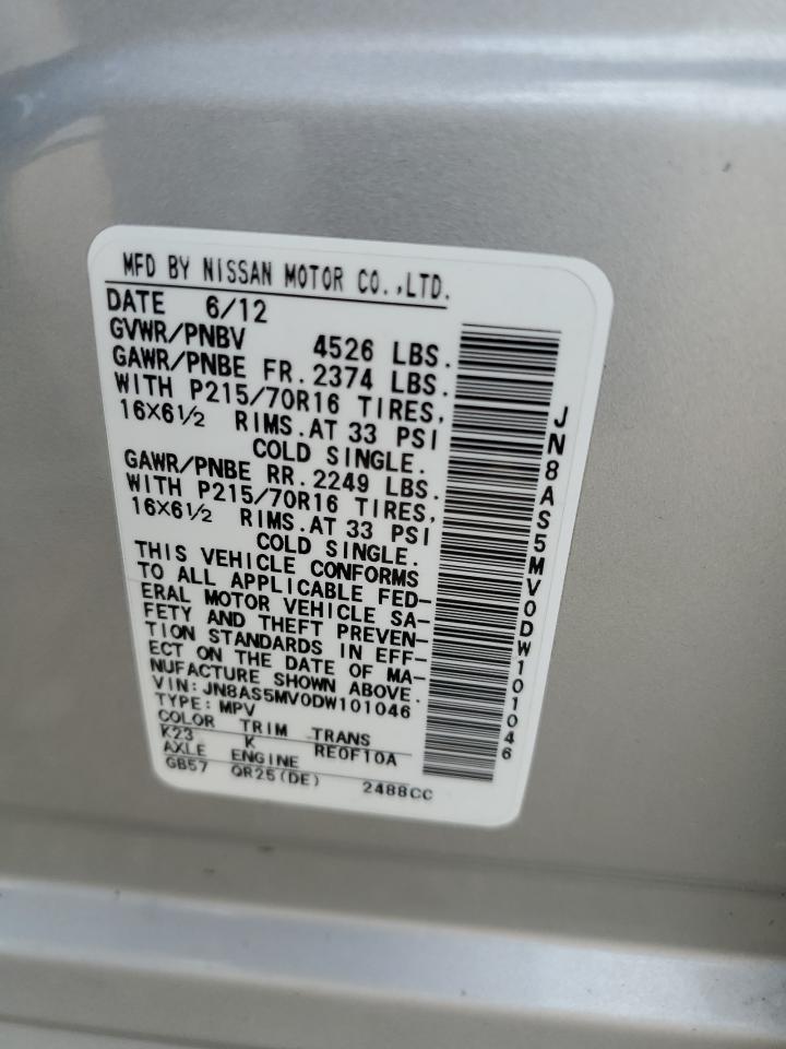 2013 NISSAN ROGUE - JN8AS5MV0DW101046, колір - Срібний, 2.5, Бензин, Повний привід із США