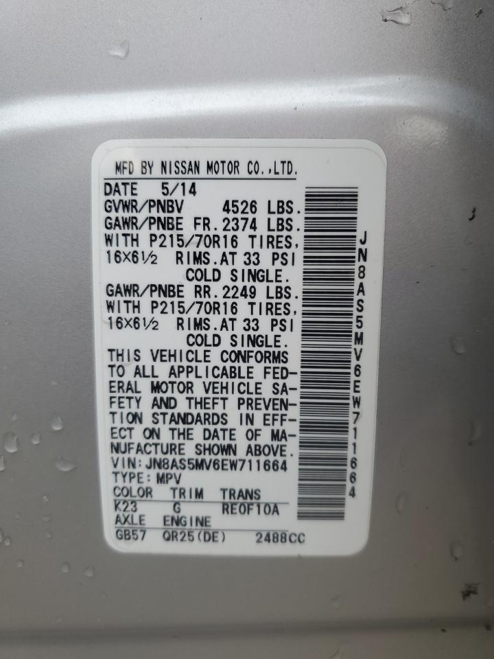 2014 NISSAN ROGUE - JN8AS5MV6EW711664, колір - Срібний, 2.5, Бензин, Повний привід із США