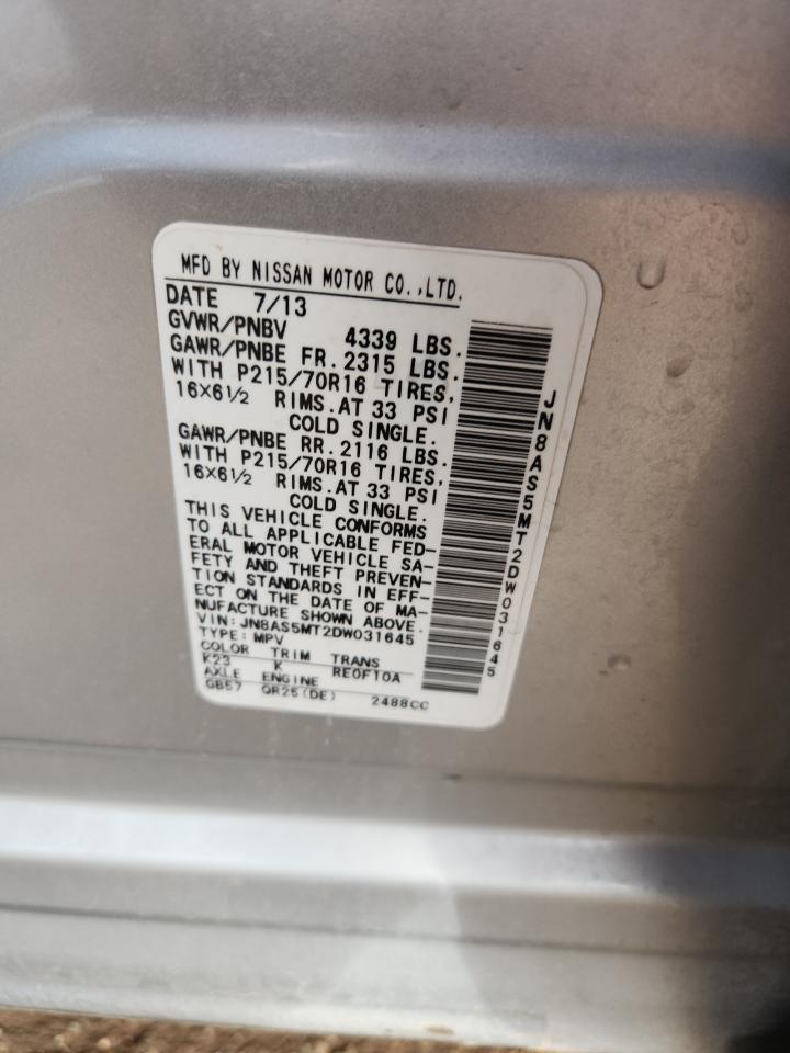 2013 NISSAN ROGUE - JN8AS5MT2DW031645, колір - Срібний, 2.5, Бензин, із США