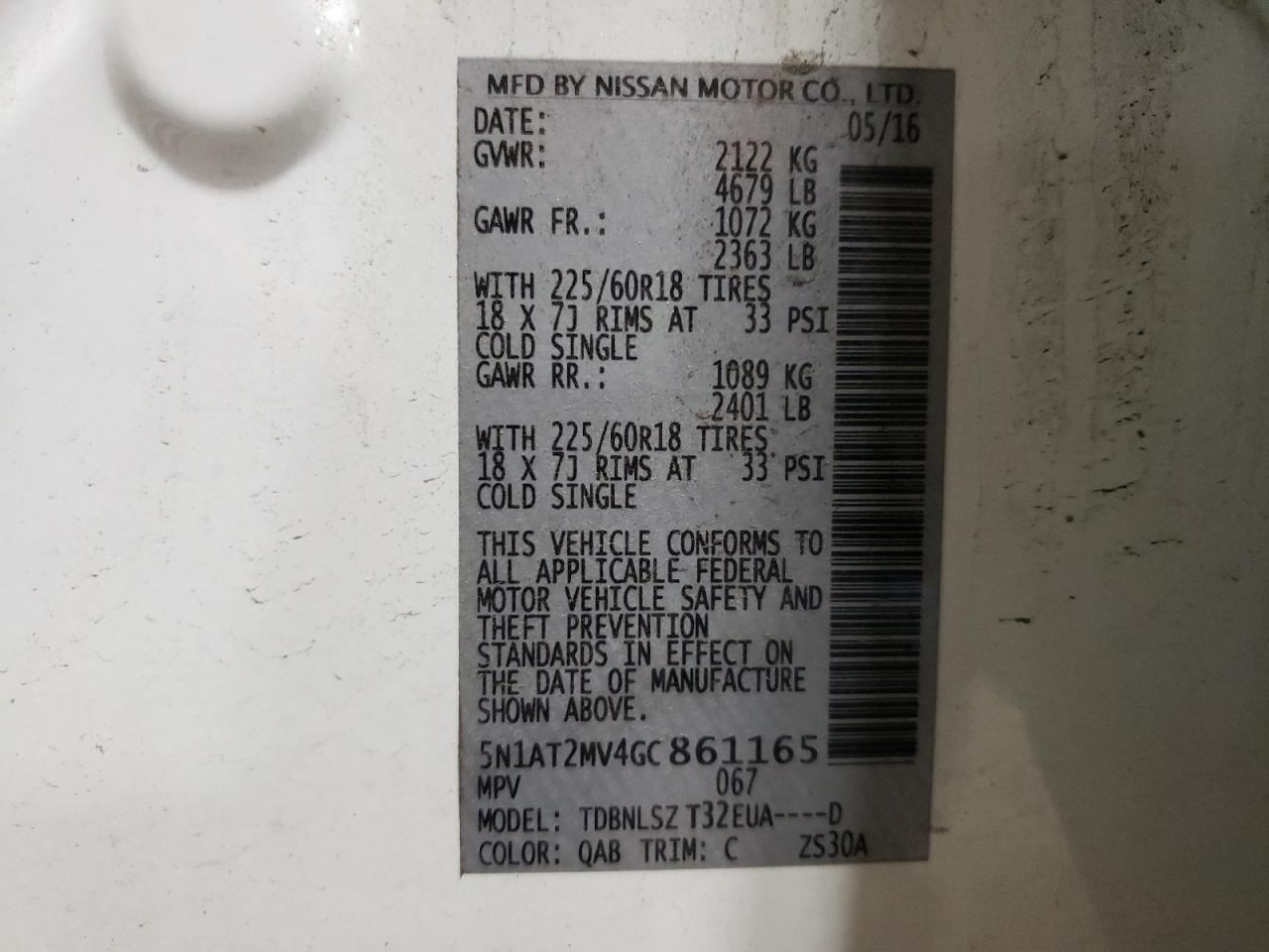 Колір БілийЦиліндри 4Привід Повний привідVIN 5N1AT2MV4GC861165Стан ЗаводитьсяУшкодження З боків