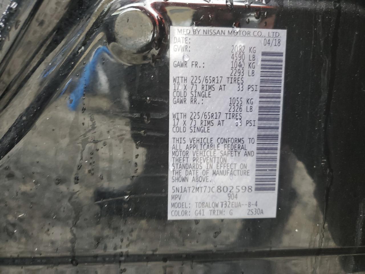 Колір ЧорнийЦиліндри 4VIN 5N1AT2MT7JC802598Стан НевідомоУшкодження Пожежа двигунаДата аукціона 2025-10-07