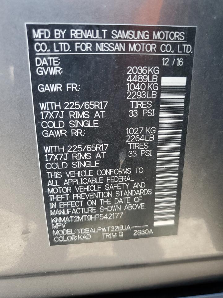 2017 NISSAN ROGUE - KNMAT2MT9HP542177, колір - Сірий, 2.5, Бензин, із США