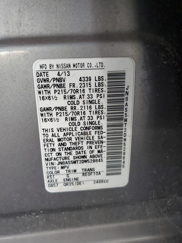 2013 NISSAN ROGUE - JN8AS5MT2DW529845, колір - Срібний, 2.5, Бензин, із США