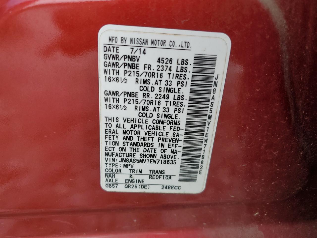 2014 NISSAN ROGUE - JN8AS5MV1EW718635, колір - Бургундія, 2.5, Бензин, Повний привід із США