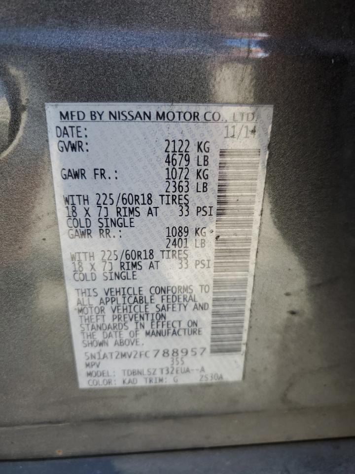 2015 NISSAN ROGUE - 5N1AT2MV2FC788957, колір - Сірий, 2.5, Бензин, Повний привід із США