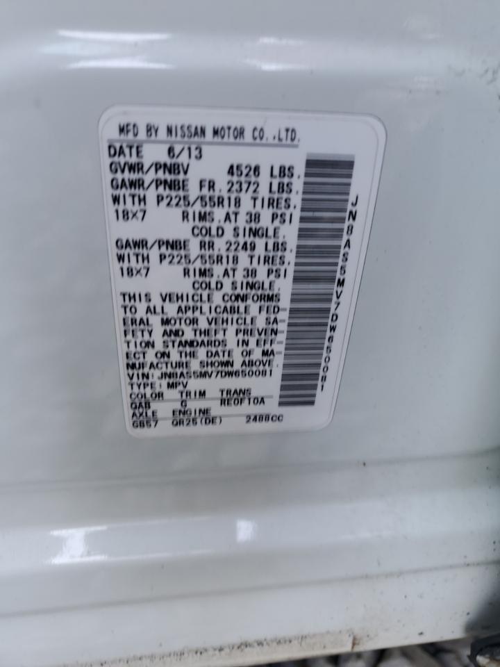 2013 NISSAN ROGUE - JN8AS5MV7DW650081, колір - Білий, 2.5, Бензин, Повний привід із США