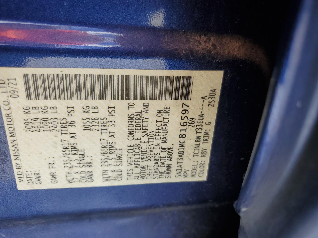 2021 NISSAN ROGUE - 5N1AT3AB1MC816597, колір - Синій, 2.5, Бензин, Повний привід із США