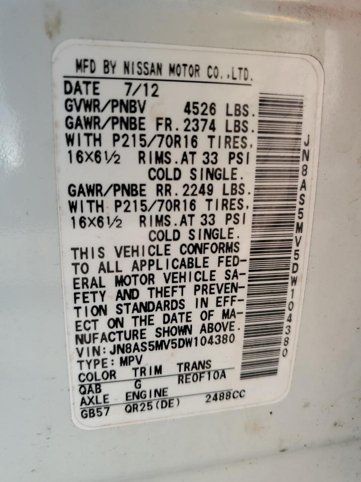 2013 NISSAN ROGUE - JN8AS5MV5DW104380, колір - Білий, 2.5, Бензин, Повний привід із США