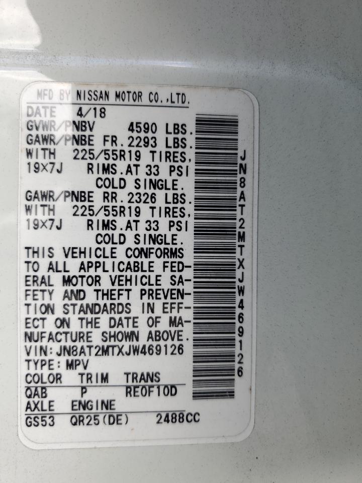 2018 NISSAN ROGUE - JN8AT2MTXJW469126, колір - Білий, 2.5, Бензин, із США