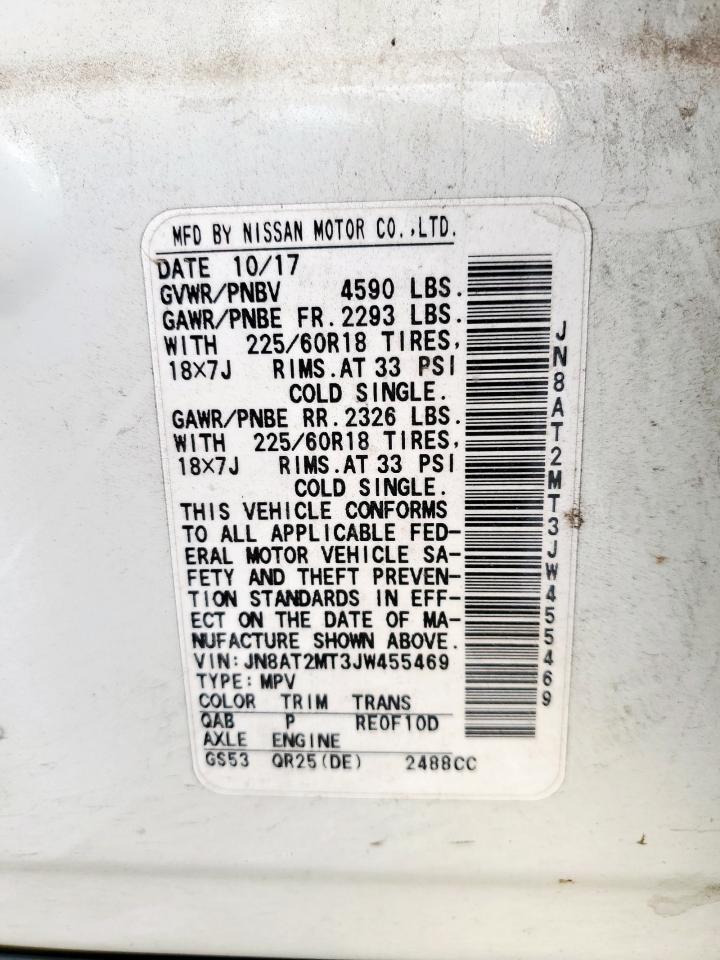 2018 NISSAN ROGUE - JN8AT2MT3JW455469, колір - Білий, 2.5, Бензин, із США