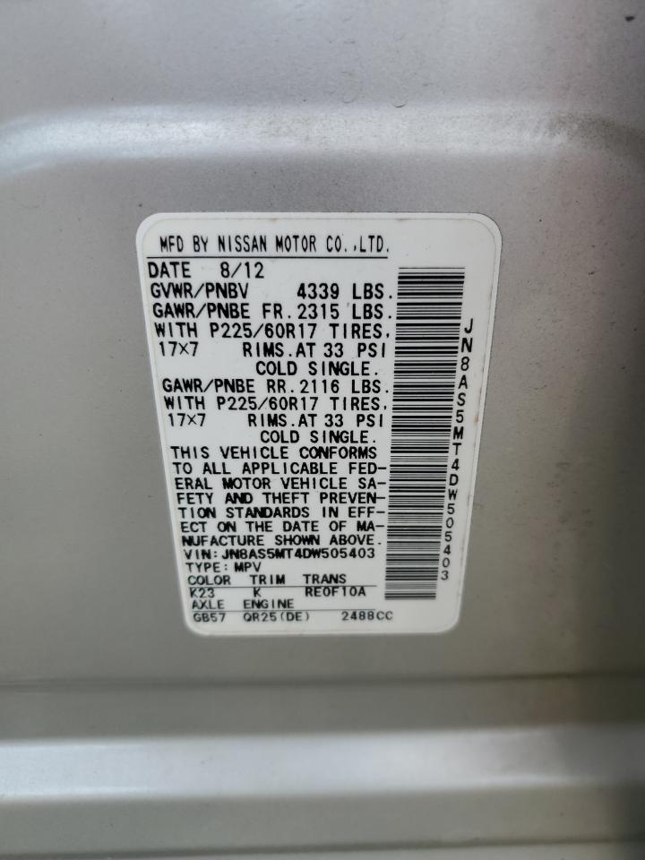 2013 NISSAN ROGUE - JN8AS5MT4DW505403, колір - Срібний, 2.5, Бензин, із США
