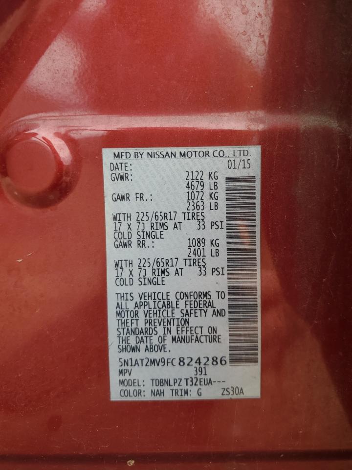 2015 NISSAN ROGUE - 5N1AT2MV9FC824286, колір - Червоний, 2.5, Бензин, Повний привід із США