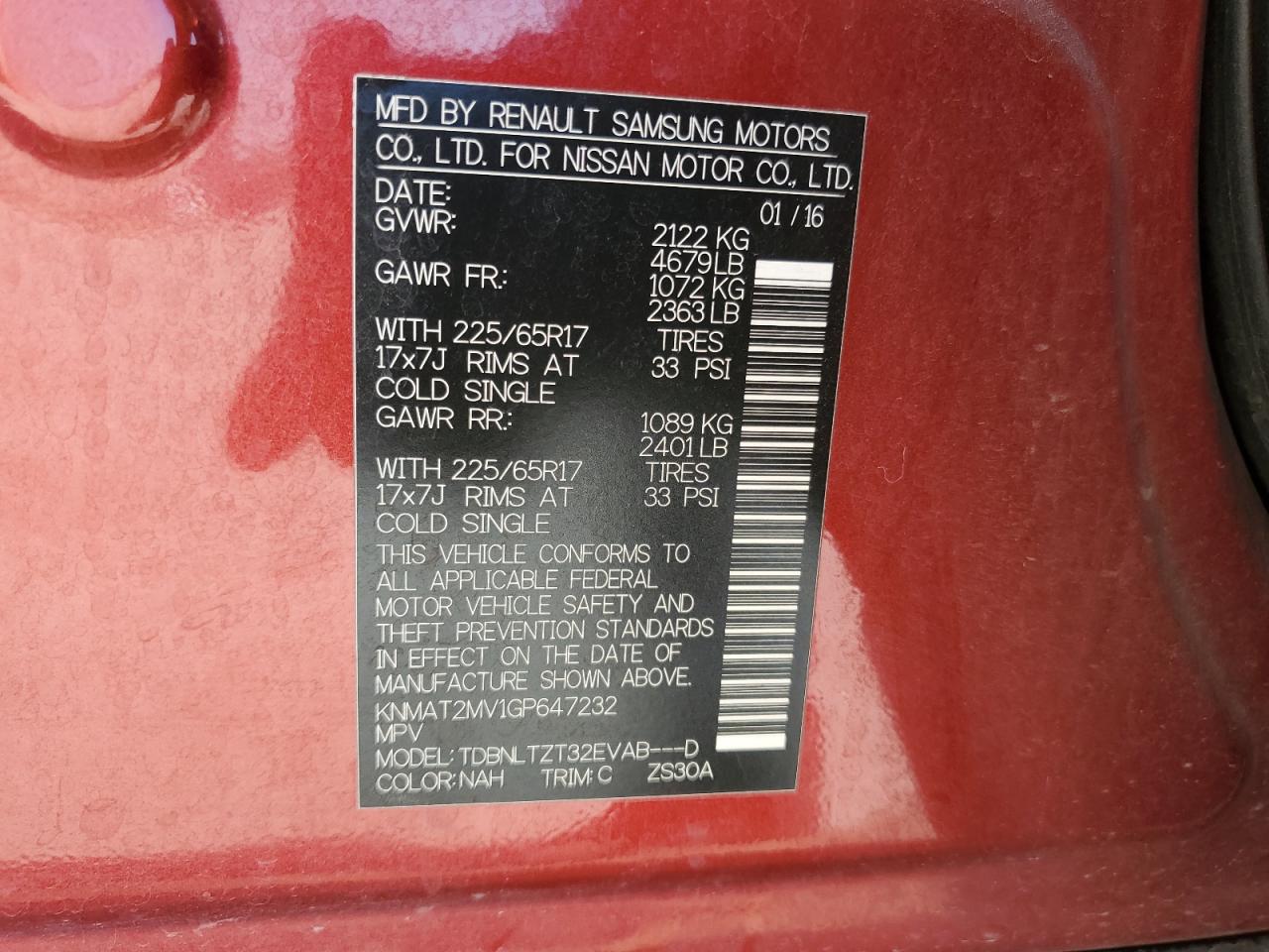 2016 NISSAN ROGUE - KNMAT2MV1GP647232, колір - Червоний, 2.5, Бензин, Повний привід із США