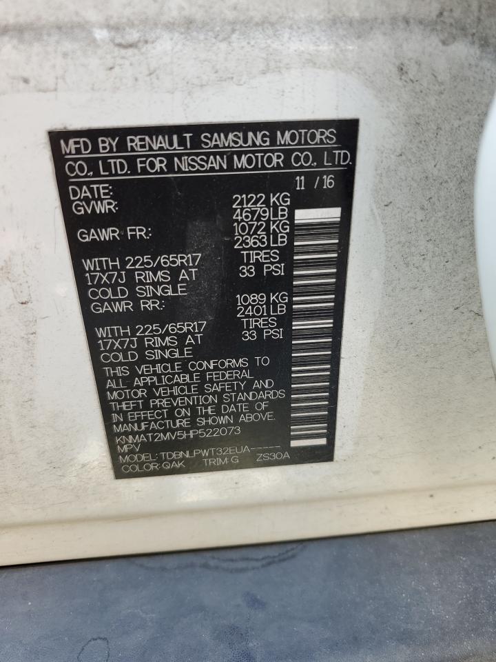 2017 NISSAN ROGUE - KNMAT2MV5HP522073, колір - Білий, 2.5, Бензин, Повний привід із США