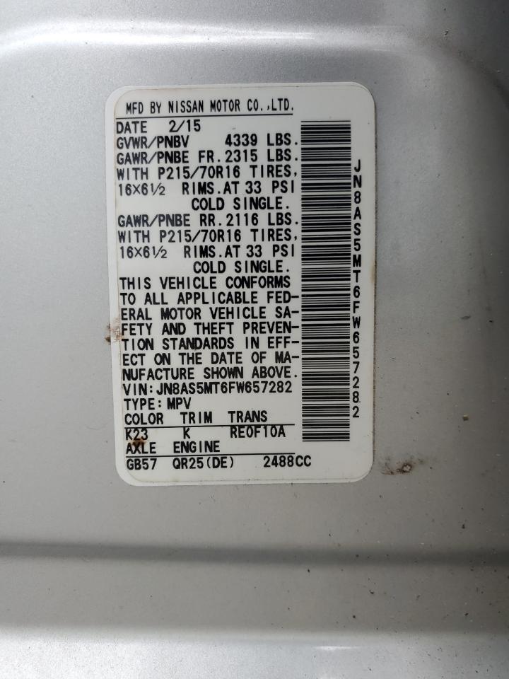 2015 NISSAN ROGUE - JN8AS5MT6FW657282, колір - Срібний, 2.5, Бензин, із США
