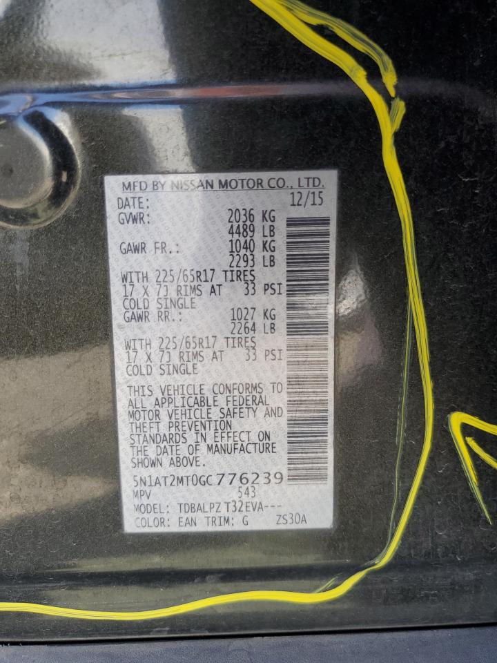 2016 NISSAN ROGUE - 5N1AT2MT0GC776239, колір - Деревне вугілля, 2.5, Бензин, із США