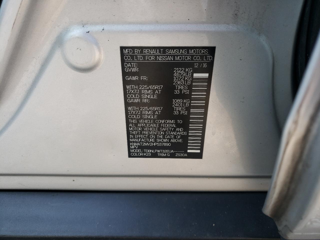 Колір СірийЦиліндри 4Привід Повний привідVIN KNMAT2MV2HP537890Стан Заводиться та їде (перевірено)Ушкодження НезначніДата аукціона 2025-10-08