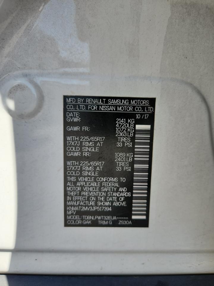 2018 NISSAN ROGUE - KNMAT2MV3JP517394, колір - Білий, 2.5, Бензин, Повний привід із США