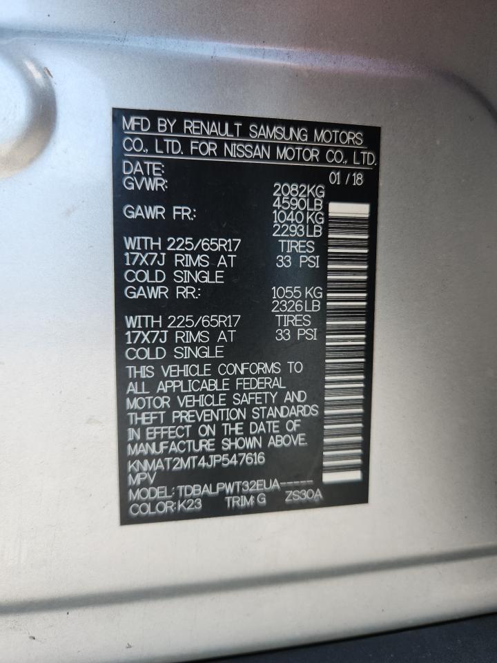 2018 NISSAN ROGUE - KNMAT2MT4JP547616, колір - Сірий, 2.5, Бензин, із США