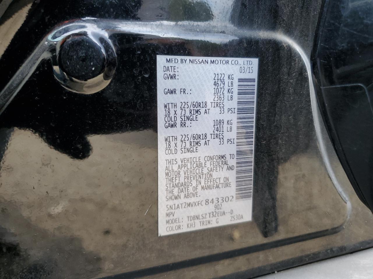 2015 NISSAN ROGUE - 5N1AT2MVXFC843302, колір - Чорний, 2.5, Бензин, Повний привід із США