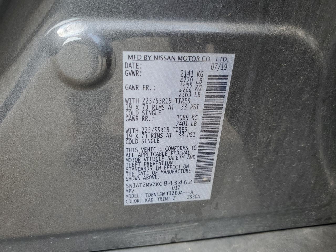 2019 NISSAN ROGUE - 5N1AT2MV7KC843462, колір - Сірий, 2.5, Бензин, Повний привід із США