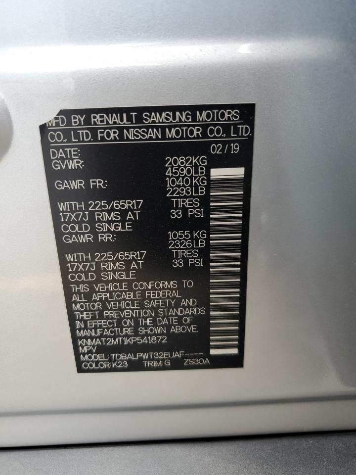 2019 NISSAN ROGUE - KNMAT2MT1KP541872, колір - Срібний, 2.5, Бензин, із США