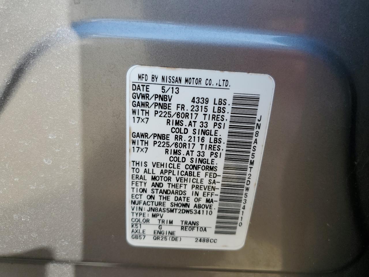 Колір СрібнийЦиліндри 4VIN JN8AS5MT2DW534110Стан Заводиться та їде (перевірено)Ушкодження Передня або задня