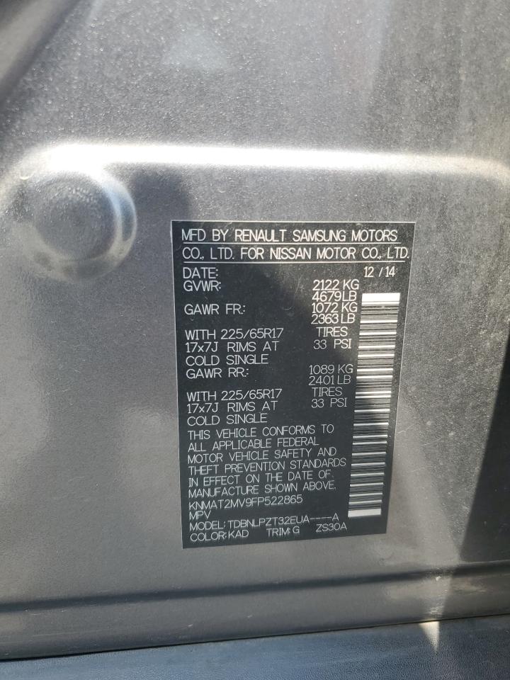 2015 NISSAN ROGUE - KNMAT2MV9FP522865, колір - Сірий, 2.5, Бензин, Повний привід із США